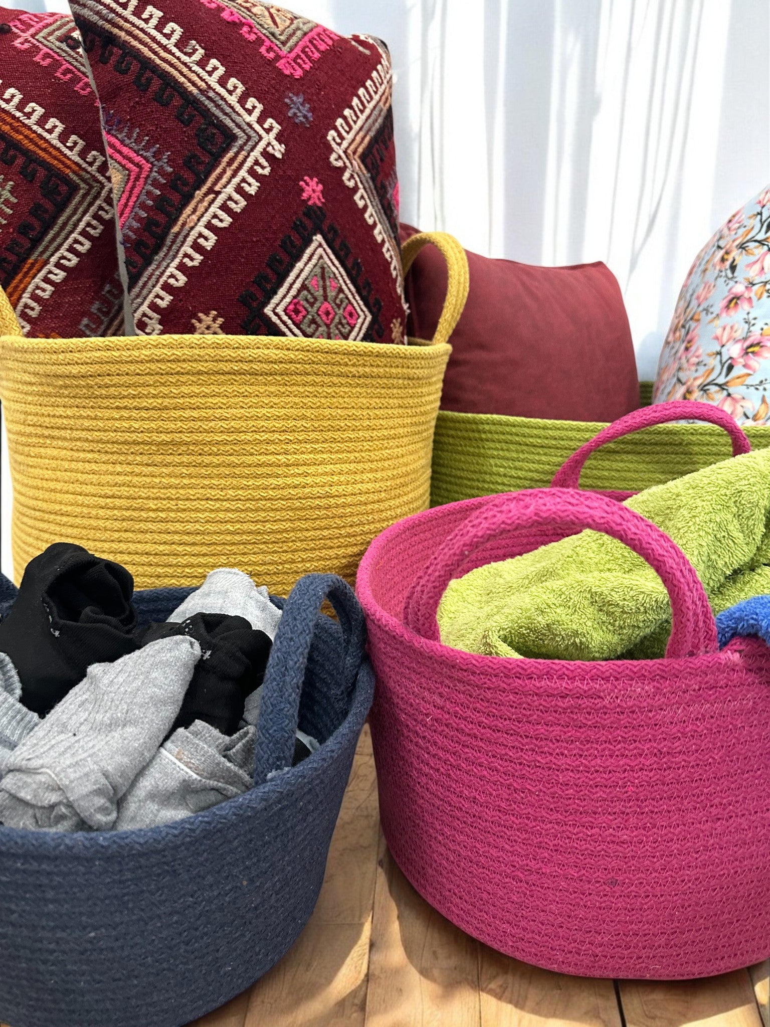 Organize your home in style with our handmade cotton rope baskets, crafted from premium-quality cotton rope for a clean, natural, and modern look. Available in 20 beautiful color options, these baskets seamlessly complement any home décor — from minimalist to boho, rustic to modern.